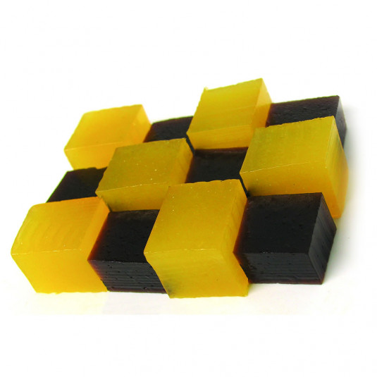 Αγάρ –Αγάρ (Συστατικά): Αγάρ – Αγάρ (Ε406), δεξτρόζη. Η φυσική ζελατίνη που δίνουν τα φύκια -πρόκειται για εκχύλισμα φυκιών- είναι άγευστη και άοσμη. Για να ενεργοποιηθεί, πρώτα πρέπει να διαλυθεί σε νερό ή άλλο υγρό και μετά να βράσει. Αρχίζει να "δουλεύει" πάνω από τους 82 βαθμούς κελσίου. Πήζει όταν κρυώσει το μείγμα.
