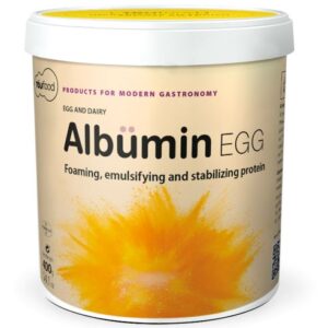 Αλβουμίνη σε σκόνη (Συστατικά): Ασπράδι αυγού σε σκόνη. Οδηγίες χρήσης: Ανακατέψτε κρύο και χτυπήστε καλά. Καλύτερο αποτέλεσμα μετά από 24 ώρες. 100gr/L νερού ή πούλπας. 25gr/Kg συμπυκνωμένης πούλπας.
