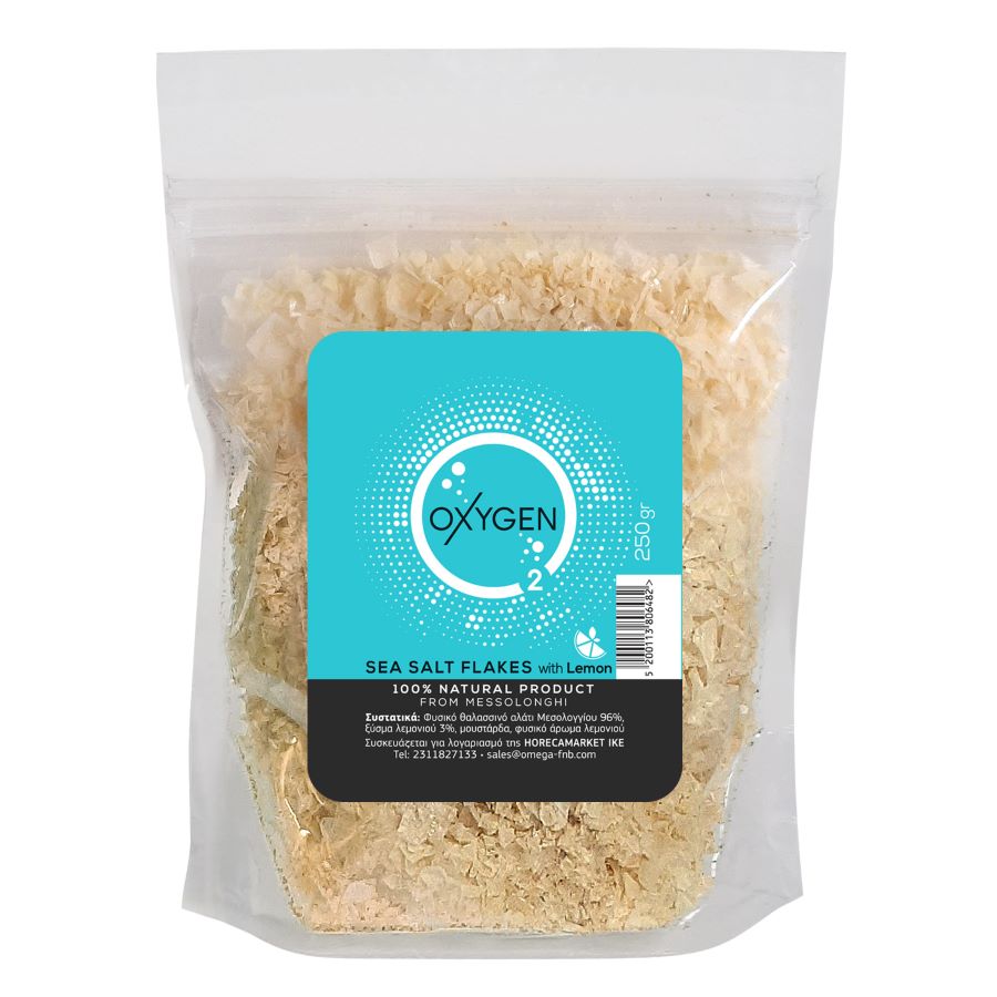 Αλάτι Μεσολογγίου flakes (νιφάδες) με λεμόνι OXYGEN 250g