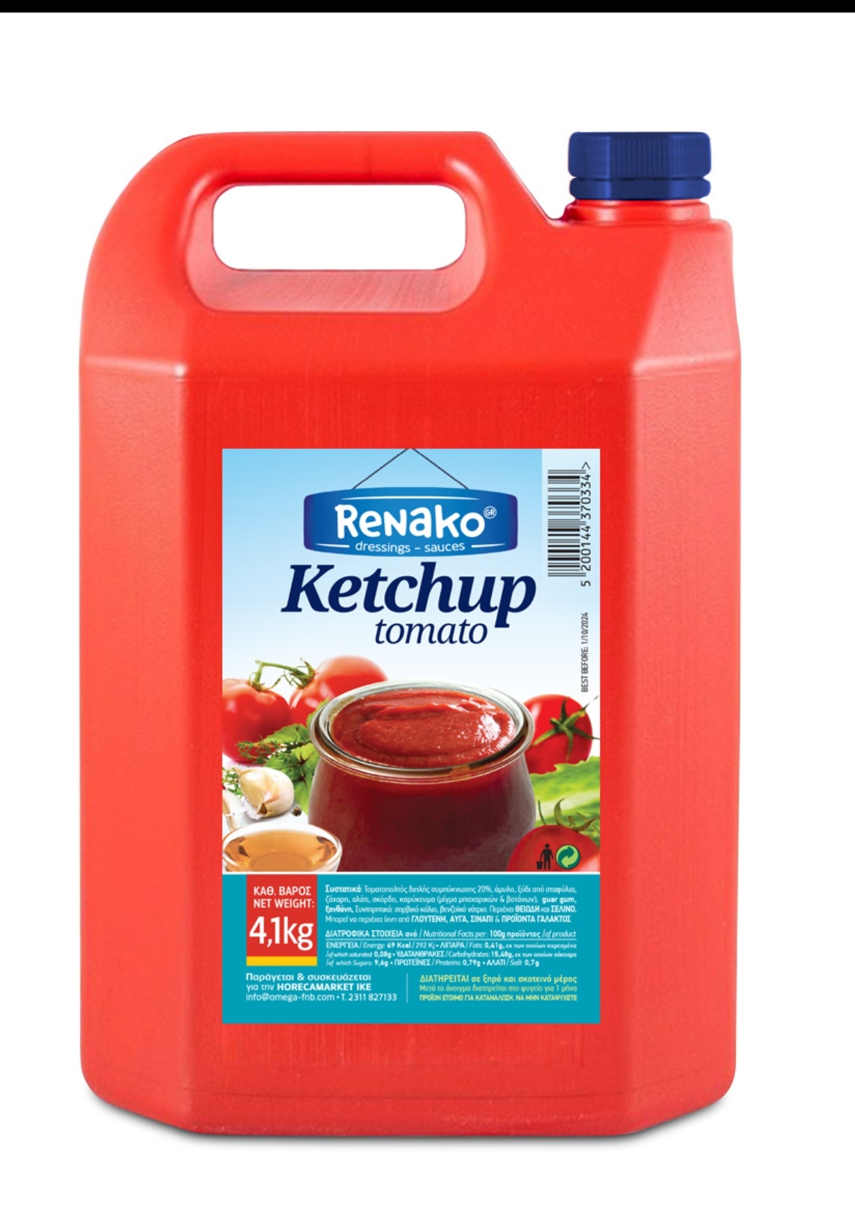Πυκνή υφή πορφυρό χρώμα με γλυκιά γεύση.Πλούσια σε ποσόστωση ντομάτας είναι η ketchup RENAKO ! Η γεύση της θα σας καταπλήξει!